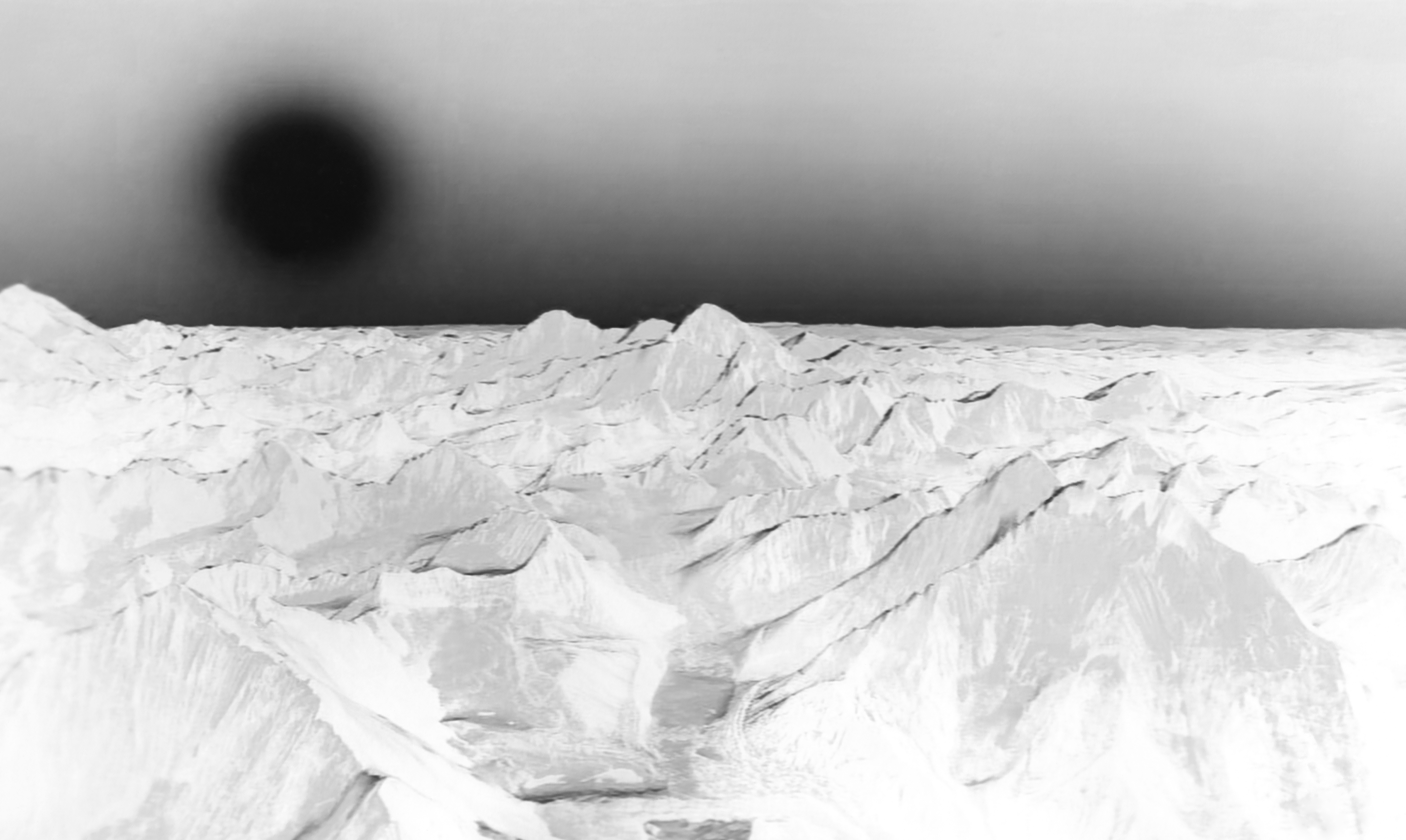 Envisioning Absence (2011) came out of my fascination with virtual environments and representations of Earth offered by so called "virtual globes". A virtual globe is a detailed representation of Earth, generated automatically by the accumulation of satellite images; it is therefore an autonomous world. Building a relationship between the autonomy of the virtual globe with the idealisation of a world devoid of human presence, I position myself as an outsider to it and wander virtually, in search for landscapes. I make direct imprints from my screen of the landscapes I 'discover', and in so doing, explore contradictions between the digital and immaterial nature of these virtual representations with the gesture and materiality of the analogue photographic process.